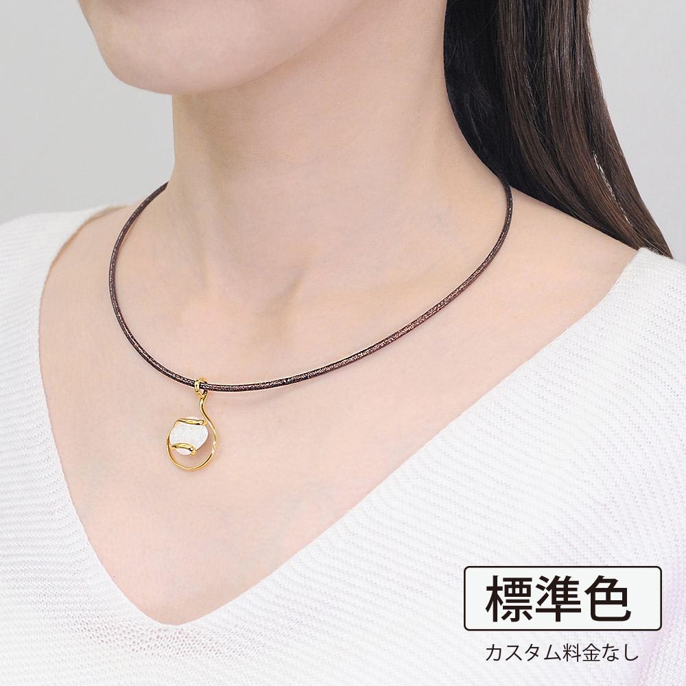 磁石の磁力をにより、留め具なしで簡単着脱が可能です。装着時最長45cmまでの長さで、自由なサイズに調整してお使いいただくことができます。ルーミンの磁気ネックレス部分は、イタリア製外皮素材を用いて、日本国内で熟練の職人により丁寧に製造されています。