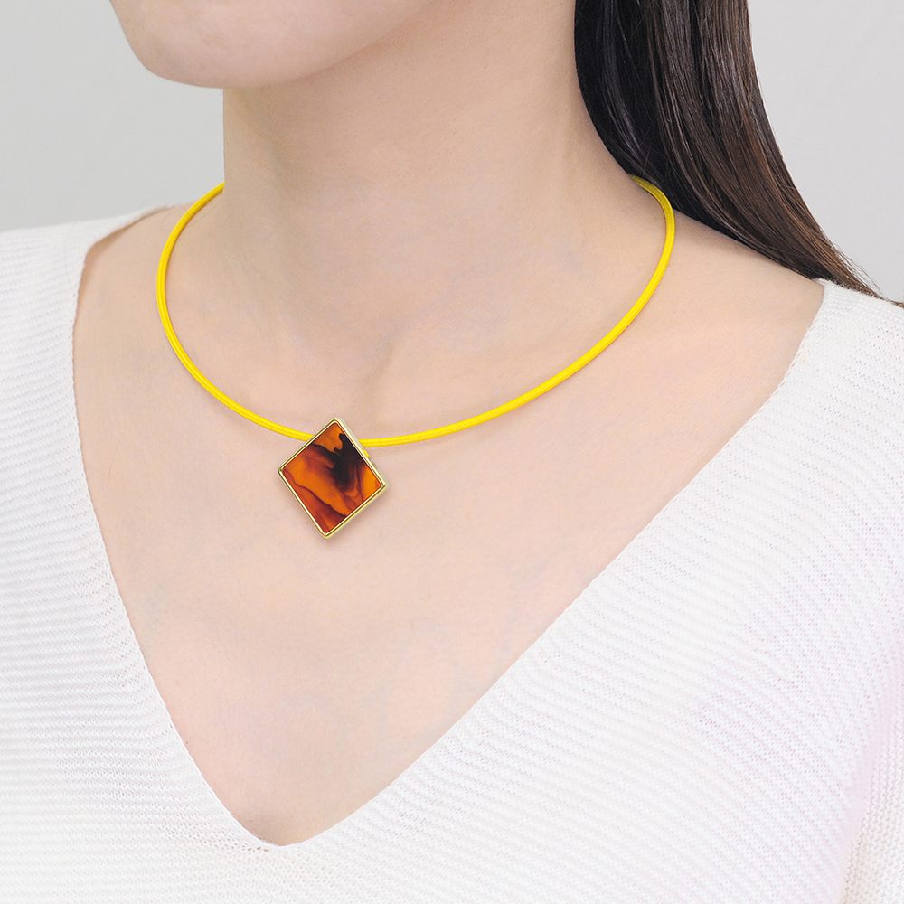 〈ペンダント〉真鍮、ガラス、粘土
