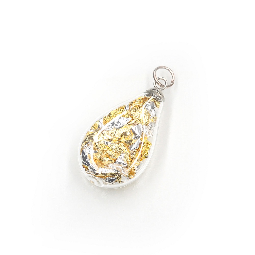 私たちは、ありのままの姿で使うというアイデアを思いつきました。 吹きガラスの中に金箔を挟み込み、しわや折り目をつけることで、金塊のような外観を作り出します。 泡が閉じると、金箔は内部で自由に動き回り、まるで空気中を舞い、光と戯れているかのようです。 これらのジュエリーは空気のように軽やかであり、金箔は空気中で自由に舞い上がっているのです!