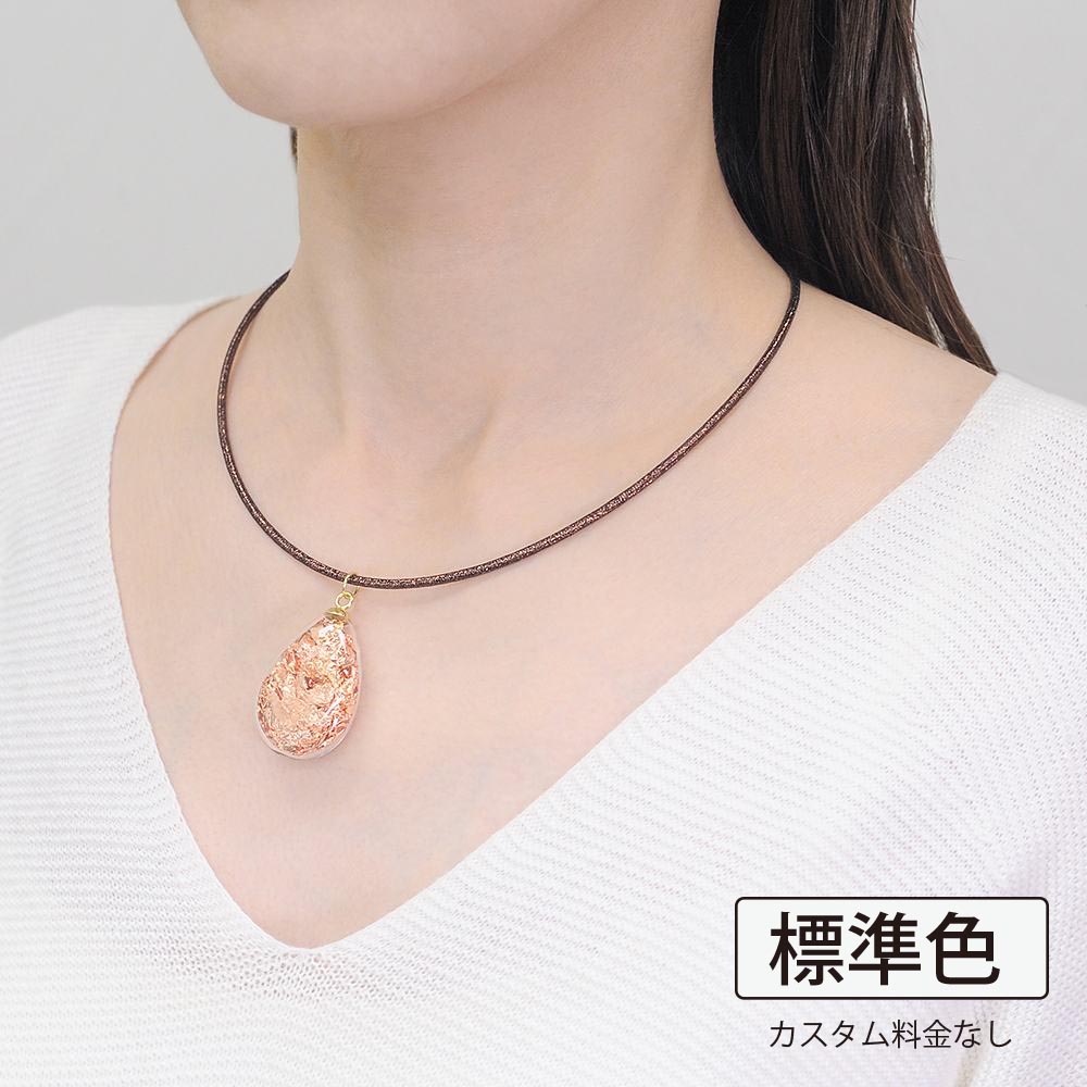 磁石の磁力をにより、留め具なしで簡単着脱が可能です。装着時最長45cmまでの長さで、自由なサイズに調整してお使いいただくことができます。ルーミンの磁気ネックレス部分は、イタリア製外皮素材を用いて、日本国内で熟練の職人により丁寧に製造されています。