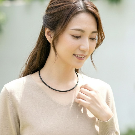 管理医療機器の認定を受けた磁気ネックレス。留め具がなく簡単に着脱していただけます。全長約55センチ(装着時最長45センチ)でお好みの長さに調整可能なフリーサイズです。